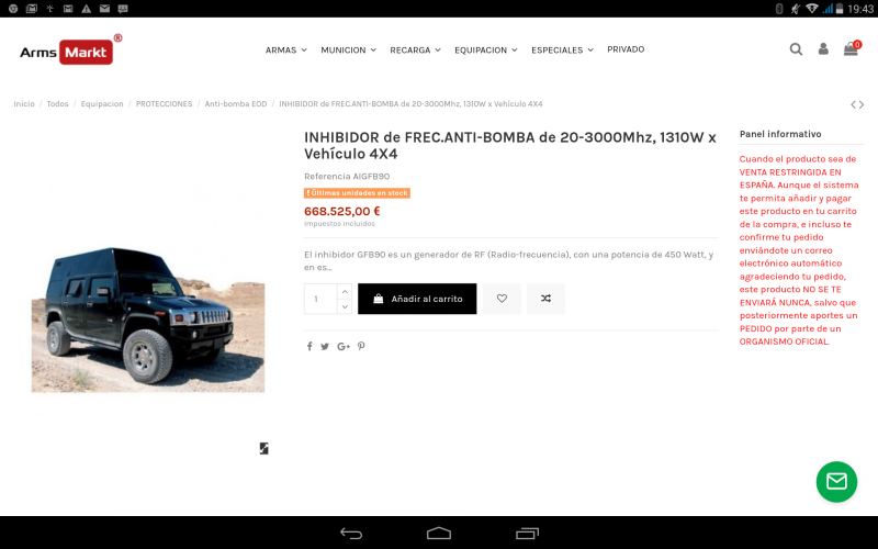 He visto que tienen unos juguetitos la mar de chulos , yo me quedaría con un vehículo inhibidor con un precio muy interesante, solo cuesta 668.525,00 € y además tienen las últimas unidades en stock. :mrgreen: