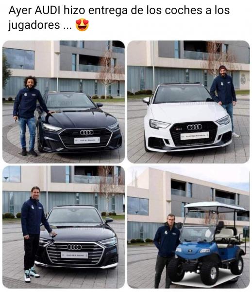 En un coche de alta gama se suben uno del Barça y otro del Madrid, ¿quien conduce el coche?, el del Barça, porque el del Madrid lleva seis copas de más.![]()