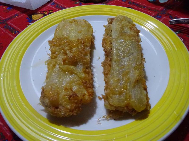 Hoy para comer pencas de acelga rellenas de paletilla iberica y queso fundente, se pasan por harina y huevo y se frien vuelta y vuelta hasta que queden doradas.