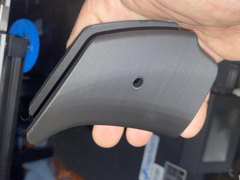 Ya estoy haciendo pequeños cambios, buceando por la red encontré unos archivos imprimibles en 3D del pistolet “target”, bastante mejor que el de serie, cubre toda la madera en una sola pieza y es algo más ancho. Lo he impreso con filamento TPE en vez del TPU usado normalmente, que son elastómeros termoplásticos o materiales similares al caucho y en mi opinión el TPE es mejor para estos menesteres.