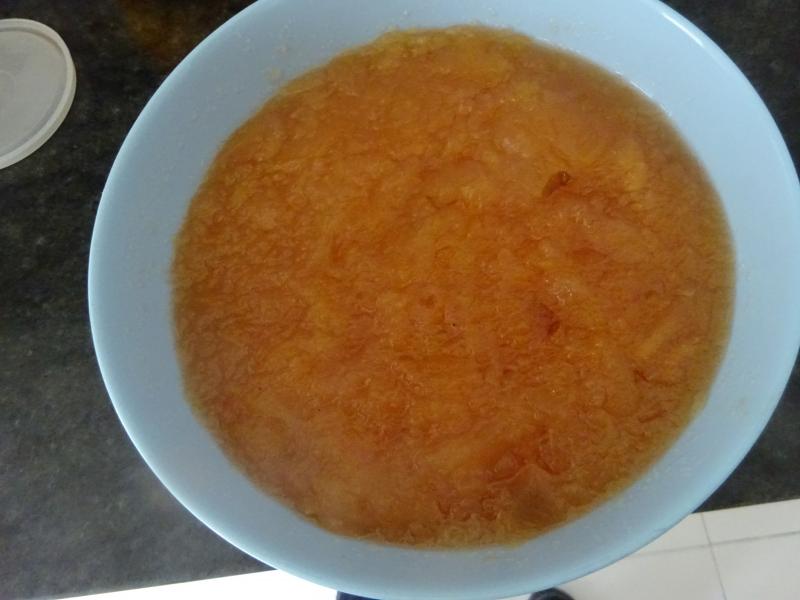 Cestitas de hojaldre industrial rellenas con revuelto de champi de cultivo a las finas hierbas, de postre compota de manzana reineta.