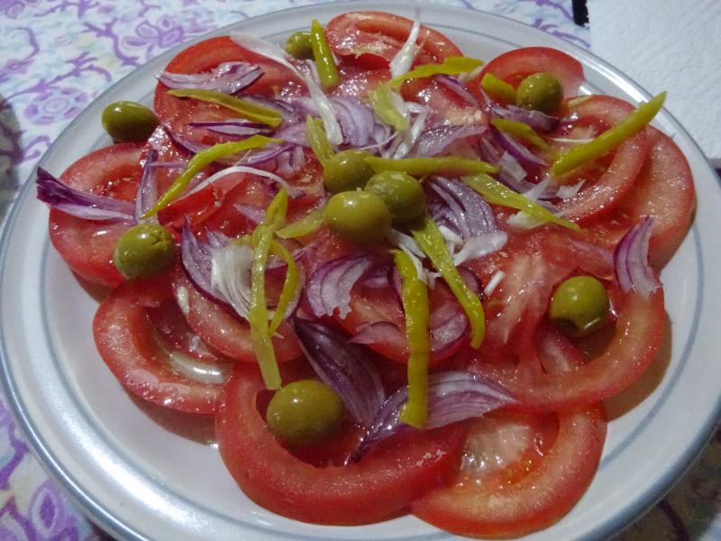 Para cenar ensalada bastante mixta con elementos procedentes de mi mermada despensa, a ver mañana que nos depara El Destino que ya sé que pescado y/o marisco no va a haber, los lunes no hay Lonja porque los domingos no se largan aparejos.