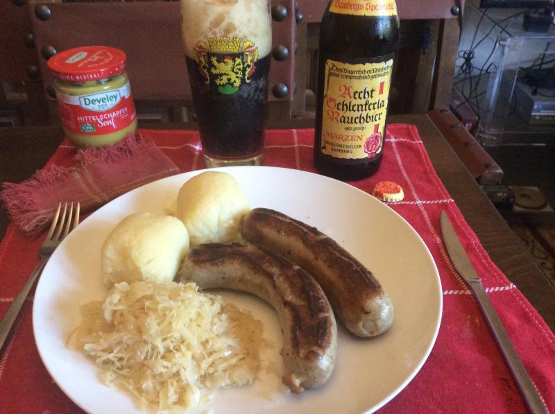 Weißwürste, mit Sauer Kraut und Kartofell Knödel. Ausgezeichnet !!!