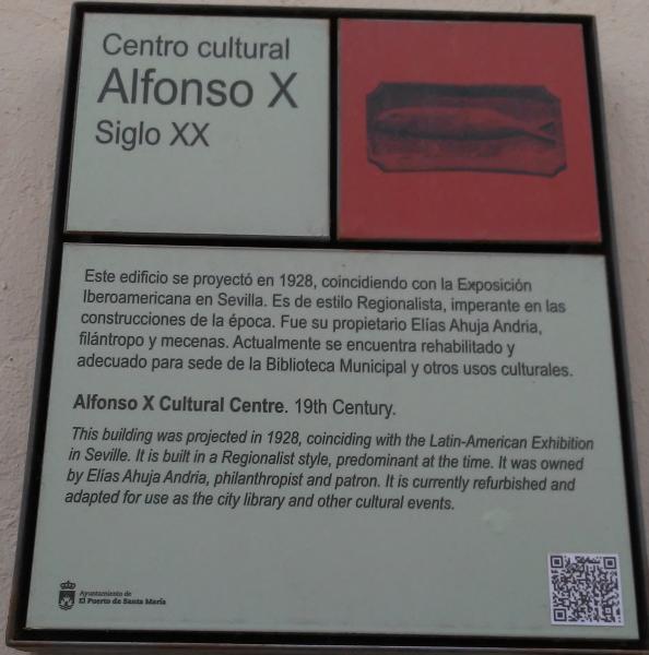 En la placa pone : Fue su propietario ELIAS AHUJA Y ANDRIA Filántropo y Mecenas.
