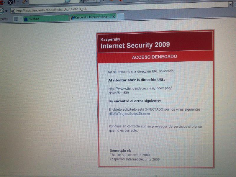 Pido disculpas, pues no se donde ponerlo, pero si entráis a comprar en http://www.tiendasdecaza.es sabez que la pagina esta te descarga un troyano me avisa el kaspersky con varios tipos de mensaje, pido perdón y que lo muevan donde corresponda, pero creí que este seria el sitio de mayor difusión para posibles afectados