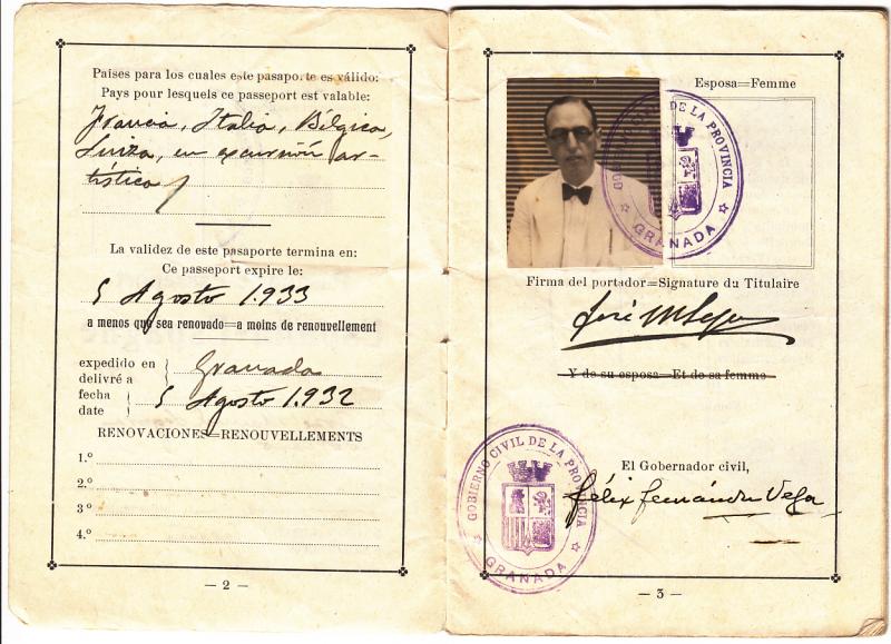 Pasaporte expedido en Granada en agosto de 1932 a JOSE MANUEL SEGURA SORIANO. ( JOSE SEGURA )