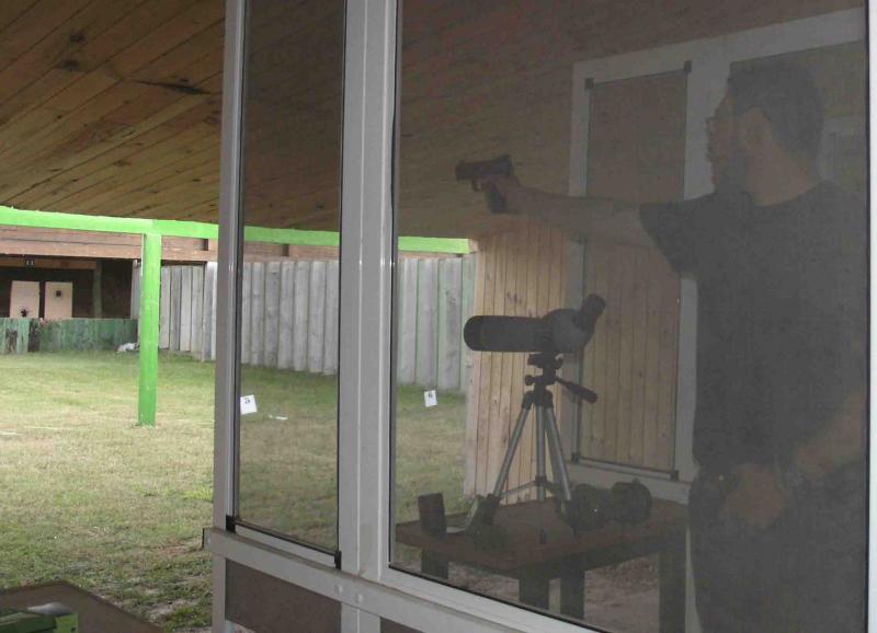 Unas afotos de los compañeros en la galería de Náquera admirando la carabina de Tiro.