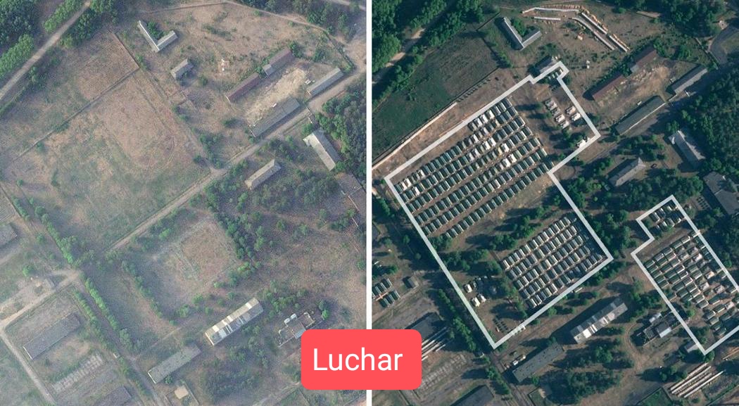 Las imágenes, sugieren que en las últimas dos semanas se instalaron decenas de tiendas de campaña en una antigua base militar en las afueras de Osipovichi, una ciudad a 230 kilómetros al norte de la frontera con Ucrania: una foto satelital tomada el 15 de junio no muestra rastro de las filas de estructuras blancas y verdes, que en cambio son claramente visibles en una imagen posterior fechada el 30 de junio.