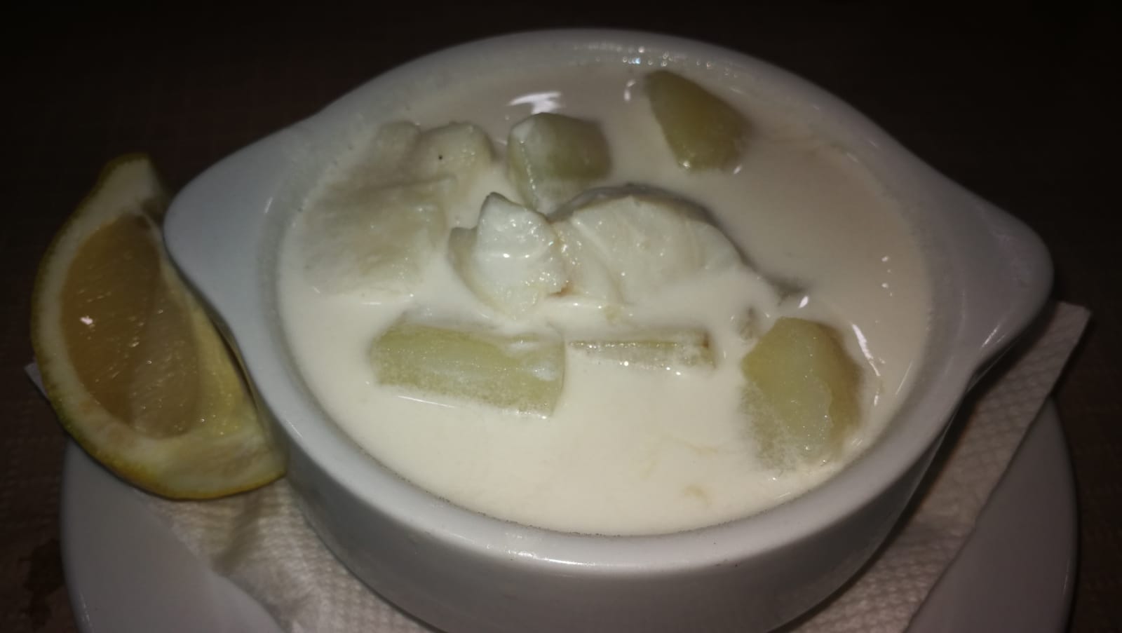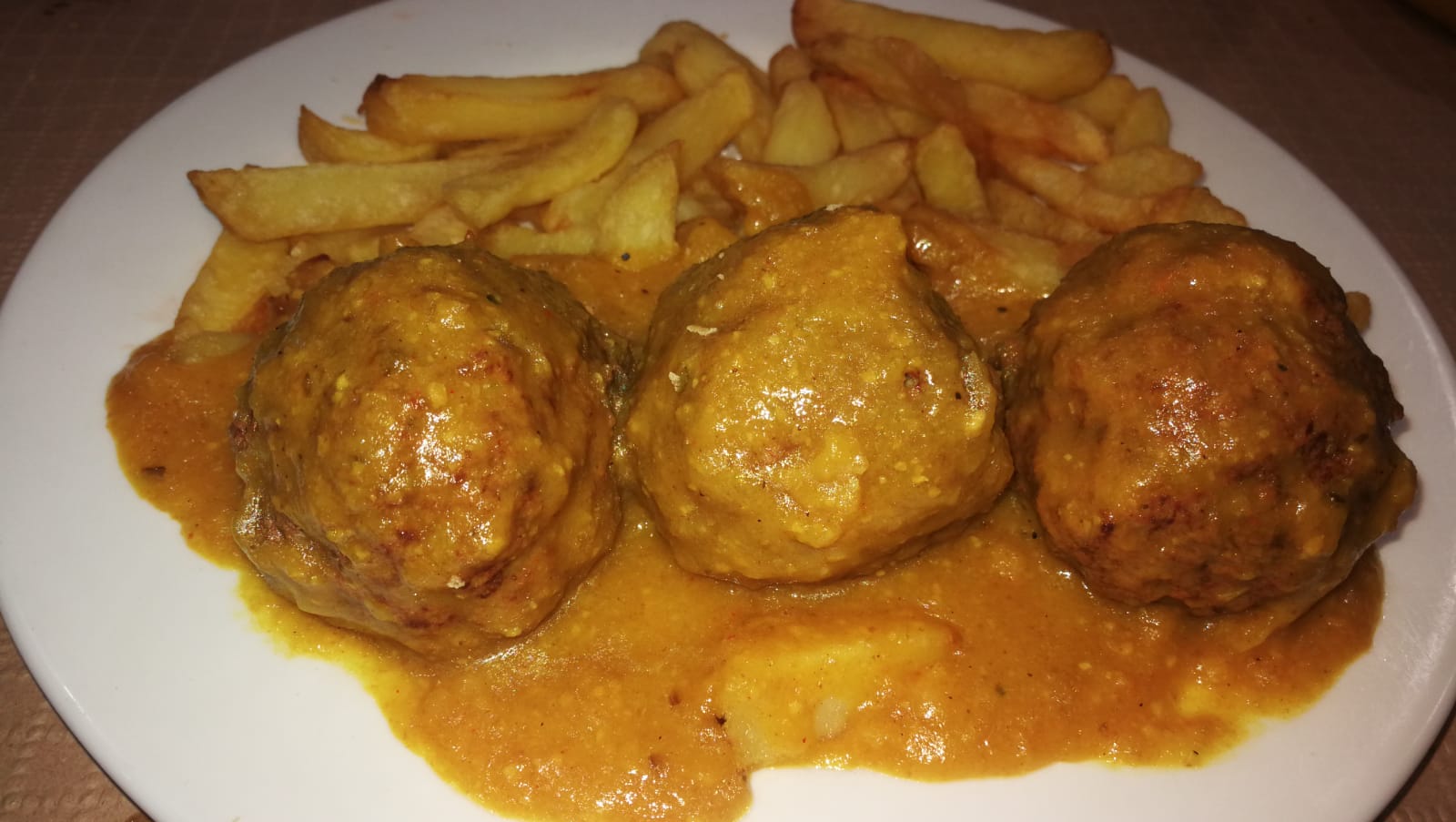 Gazpachuelo y "albóndigos" con papas.