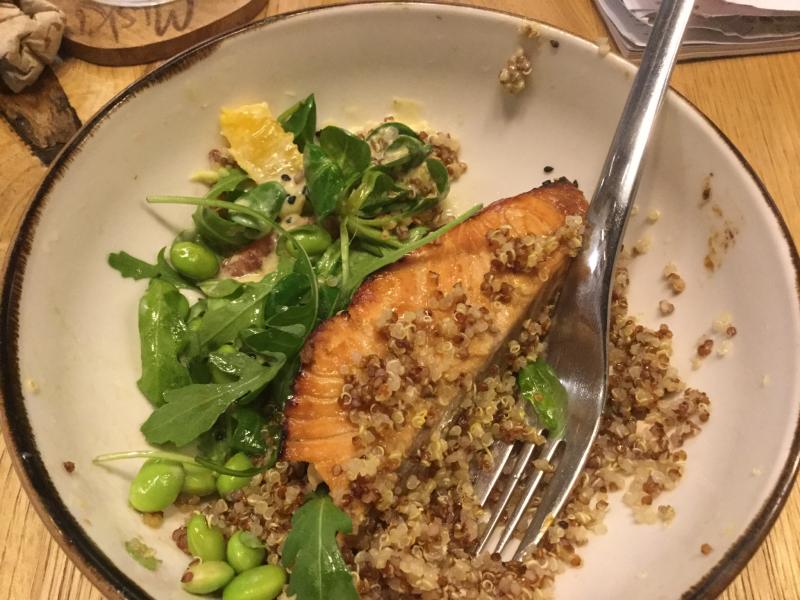 Y esto cada vez me gusta mas.....mucho más! (Salmon con quinoa, receta propia) .Joder que buenisimo estaba. Mañana toca McDonalds, niños, hay que contentarlos.