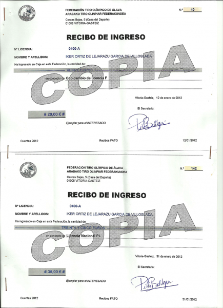 Como lo que dices es mentira, y te sale gratis gracias al anonimato de este foro, te voy a colgar unos documentos de 2012 que aunque son públicos y podría remitirte a la federación en su busca, prueban que yo he pagado todas mis licencias, el uso de instalaciones, la derrama y que renuevo mi licencia F.