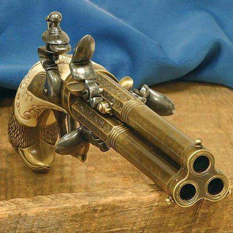 Pues si, pero a mi me gustaría uno así que pudieran salir las tres bolicas a un tiempo, no puede ser por el tema del martillo y la piedra de pedernal, y no habían llegado a inventar el tambor giratorio, ahora que es cuestión de ponerse a pensarlo, igual par ahorrar tiempo en determinadas tiradas