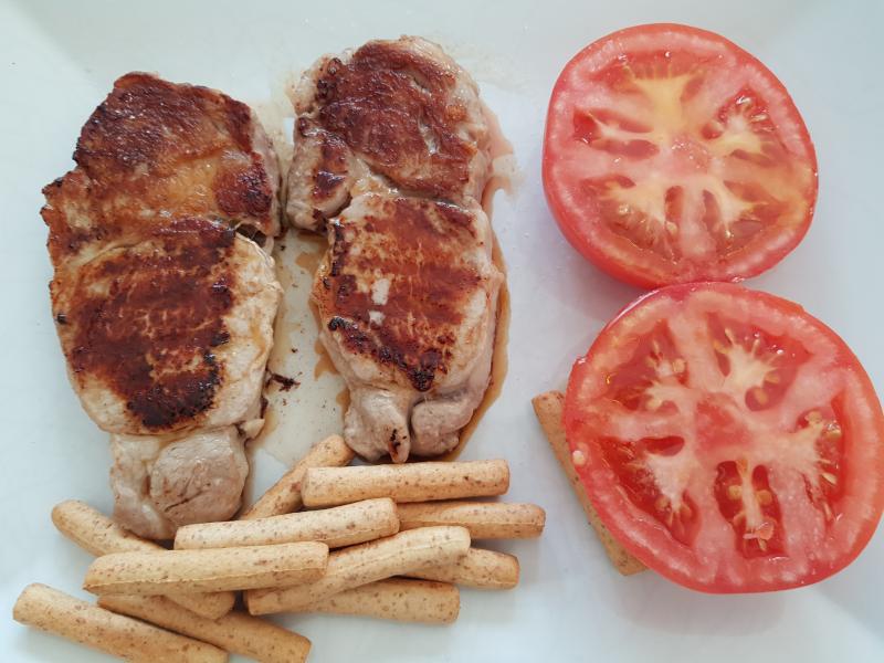 Hoy lomo de ternera blanca y tomate de ensalada.