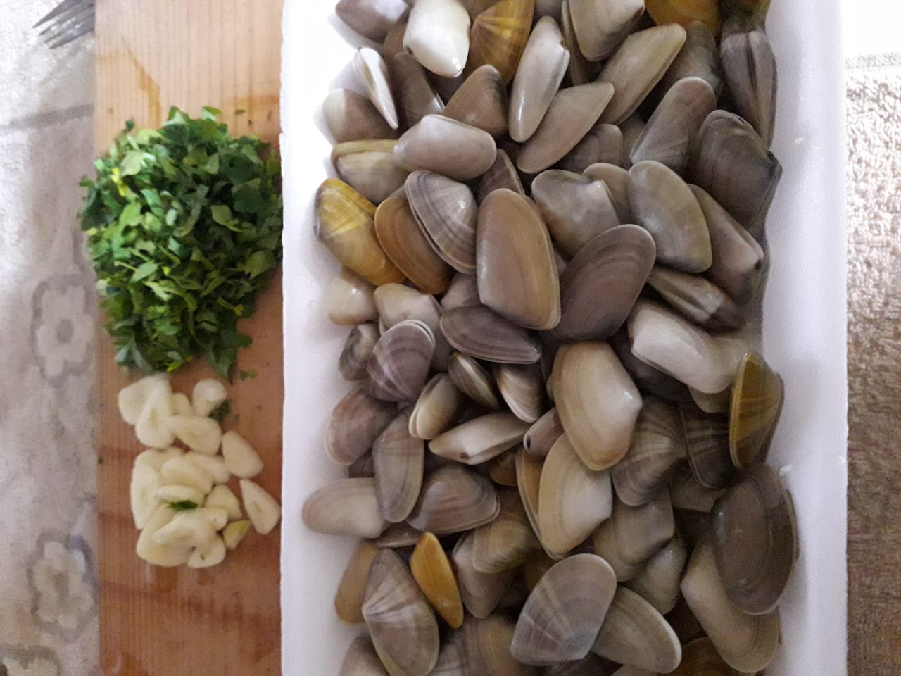 Y como hablamos y comimos Coquinas..me han traído de Isla Cristina ( Huelva), medio kilillo, y las hago como todos vosotros al vapor. A ver:ingredientes coquinas.jpg