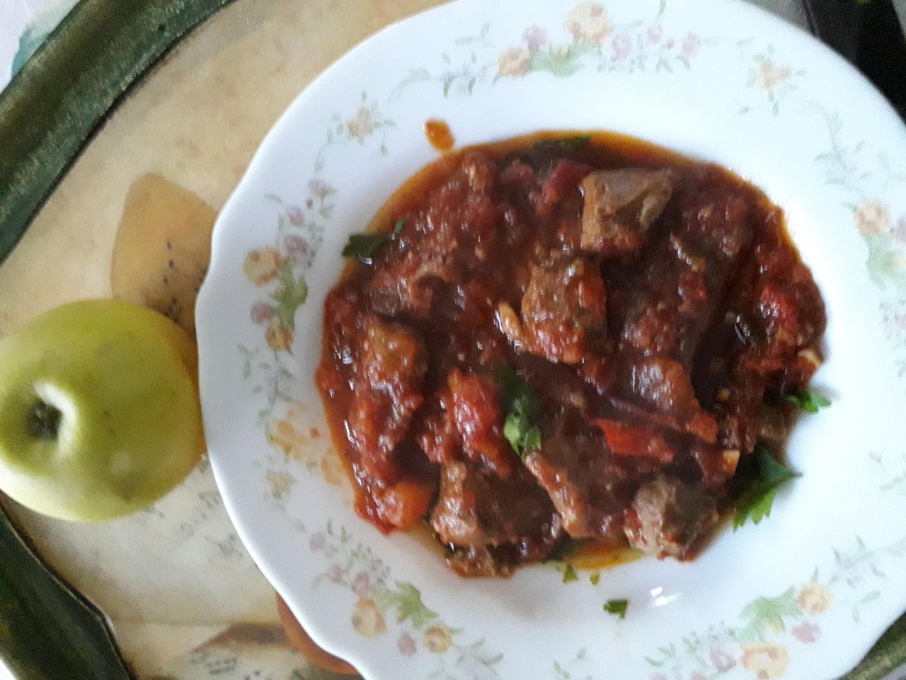 Para el día de hoy: Carrillá de cochino ibérico (con perdón), con tomate ( carrillera de cerdo, para los no iniciados).