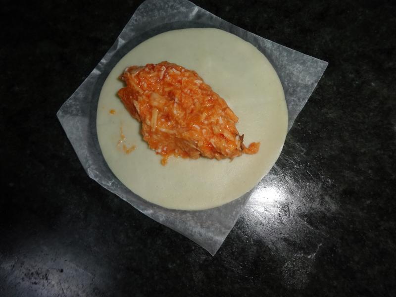 En un bol ponemos el contenido de una lata de Bonito del Consorcio escurriendo muy bien el aceite, se desmenuza a conciencia añadiendo tomate frito casero y un huevo duro muy picado, se trabaja hasta homogeneizar la masa y se rellenan las empanadillas que a continuacion se fríen o se hornean, a elegir, yo las prefiero fritas en AOVEX.![]()