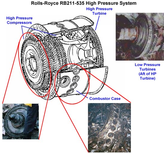 El B757 con esos motores, RB511, lleva 3 grupos de compresor-turbinas, y cada uno va siendo más pequeño, ya que se encuentran encapsulados dentro unos de los otros. Se llaman Baja, media y alta, siendo la de alta la más pequeña de los 3.