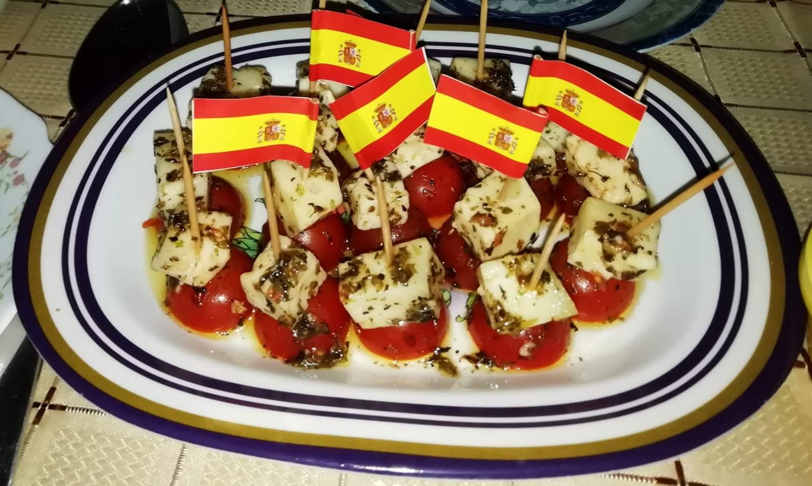 O sea: Salmorejo,croquetas caseras variadas de bechamel y de puchero, níscalos a la plancha y productos autoctonos de mi tierra ( jamón, caña de lomo, quesos varios, gambas...)