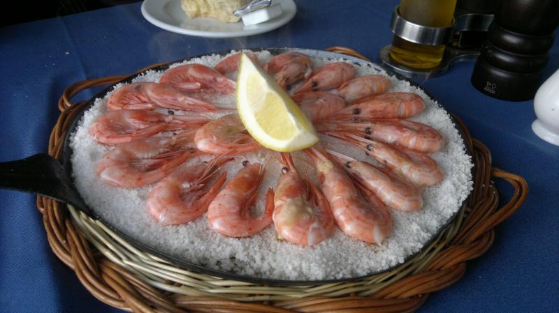Afotos de las Gambas (10 puntos sobre 12) lo otro son las clacas ... (7 puntos sobre 12) sabrosas pero menos que los percebes, bastante y muy caras para la poca comida que tienen y ademas me entere despues de que posiblemente eran de captura ilegal, lo que no me hizo tanta gracia