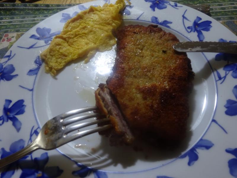 Filete de vacuno relleno de jamon y sabanita de queso fundente.