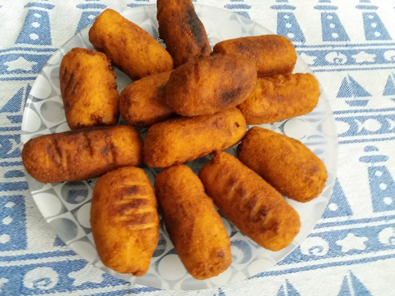 Hoy croquetas con jamón, de mi sra que hace una masa muy muy buena.