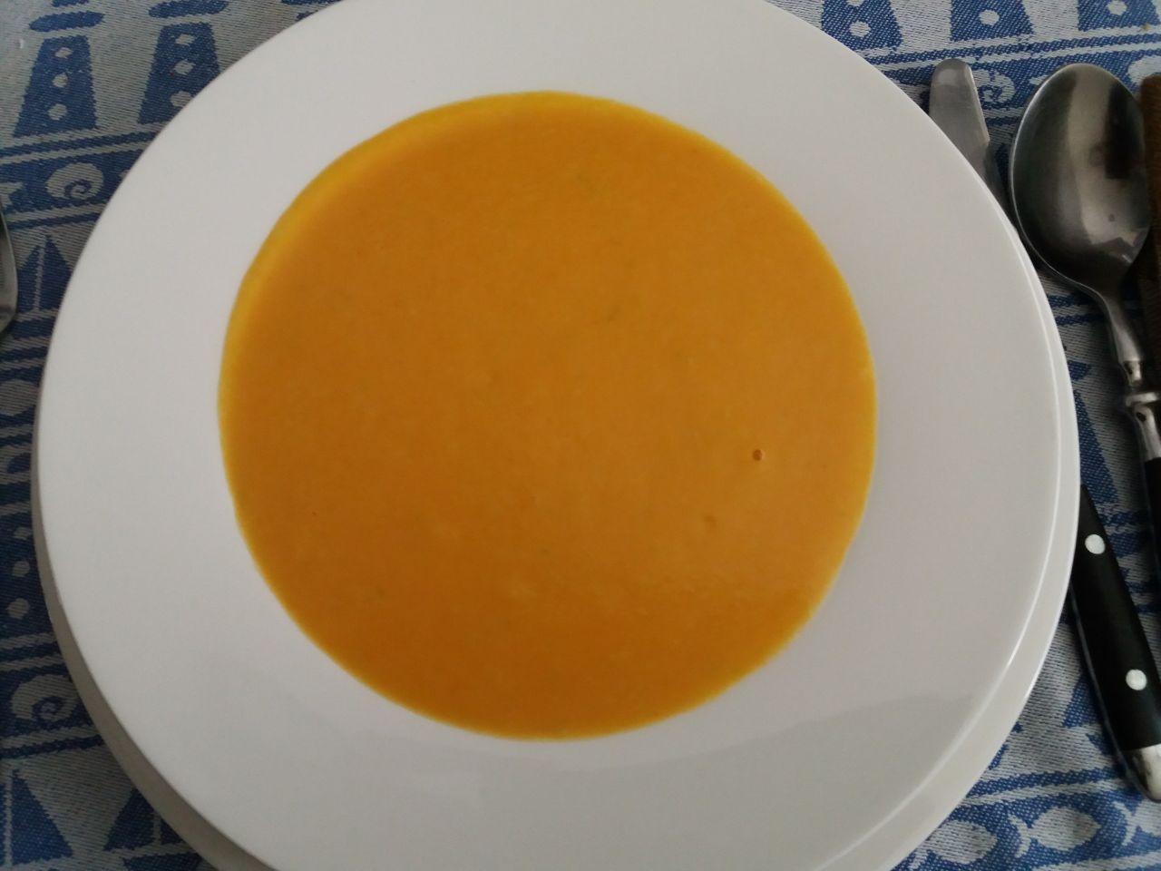 Crema de las verduras del cocido (con picatostes posteriores a la foto), y croquetas de idéntico origen.