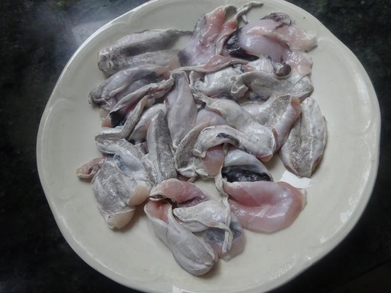 Cuarto de cocochas de merluzo que las voy a oficiar a la romana, es decir con harina , huevo y vuelta y vuelta en Arbequina AOVEX.