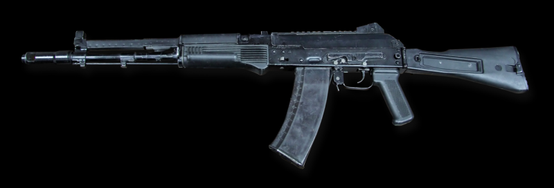 AK74: La primera variante del AK en 5.45x39. Llegó tarde en comparación con el 5.56x45 adoptado por la OTAN porque el 7.62x39 soviético es un cartucho más ligero y menos potente que el 7.62x51 que usaba la OTAN. Internamente es muy similar al AKM, externamente se puede distinguir a simple vista por unos cargadores menos curvados, debido al cartucho más recto, así como cambios en diseño de la culata, guardamanos y bocacha. Se ve tanto en manos de rusos como de Ucranianos. Hay variantes con culata plegable, cortos, ametralladoras ligeras... que se ven en abundancia.