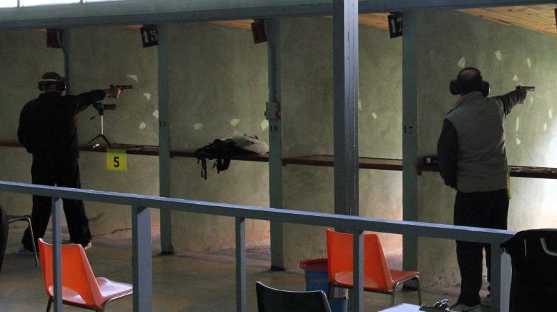Una pregunta, en una de las fotos hay una femina apoyando la pistola en una especie de gancho y a su lado hay una media luna de alambre sujetando lo que parecen unos tapaojos.