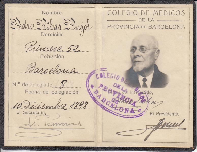 No es un pasaporte pero forma parte de la colección. Colegiado numero 8 del colegio de médicos de la provincia de Barcelona. Prestigioso psiquiatra.