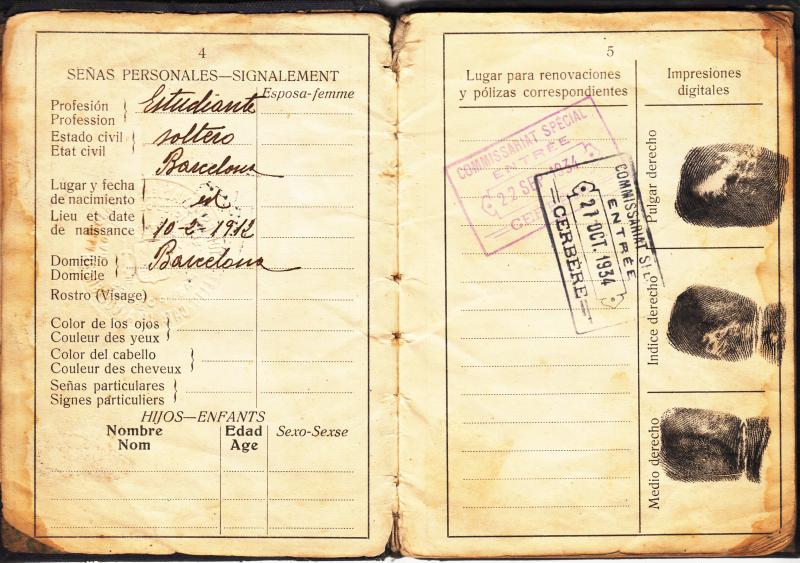 Pasaporte Republicano expedido en Barcelona en 1934 a Francisco Huard Costa