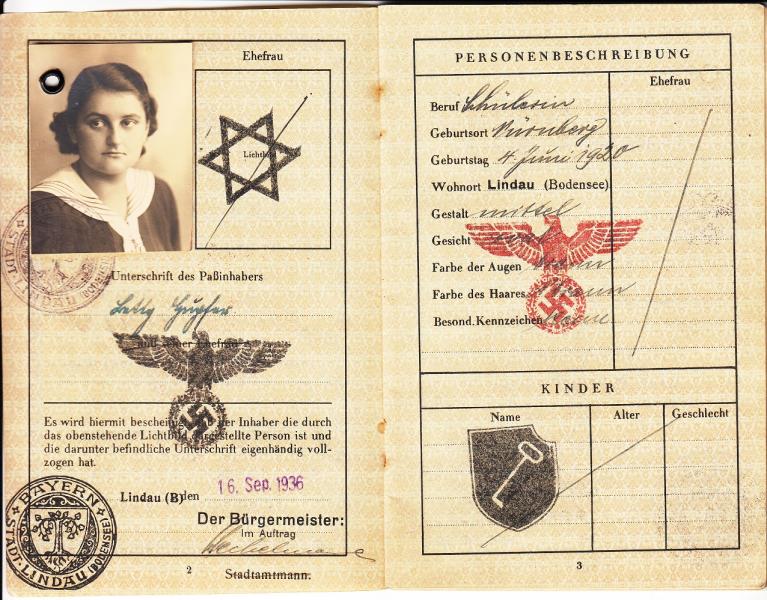 Este pasaporte alemán con extraños sellos para un pasaporte, no tiene relación directa con los pasaportes Españoles pero si con la colección, lo pongo aquí en busca de información, se trata de una muchacha creo que hebrea, de 16 años.
