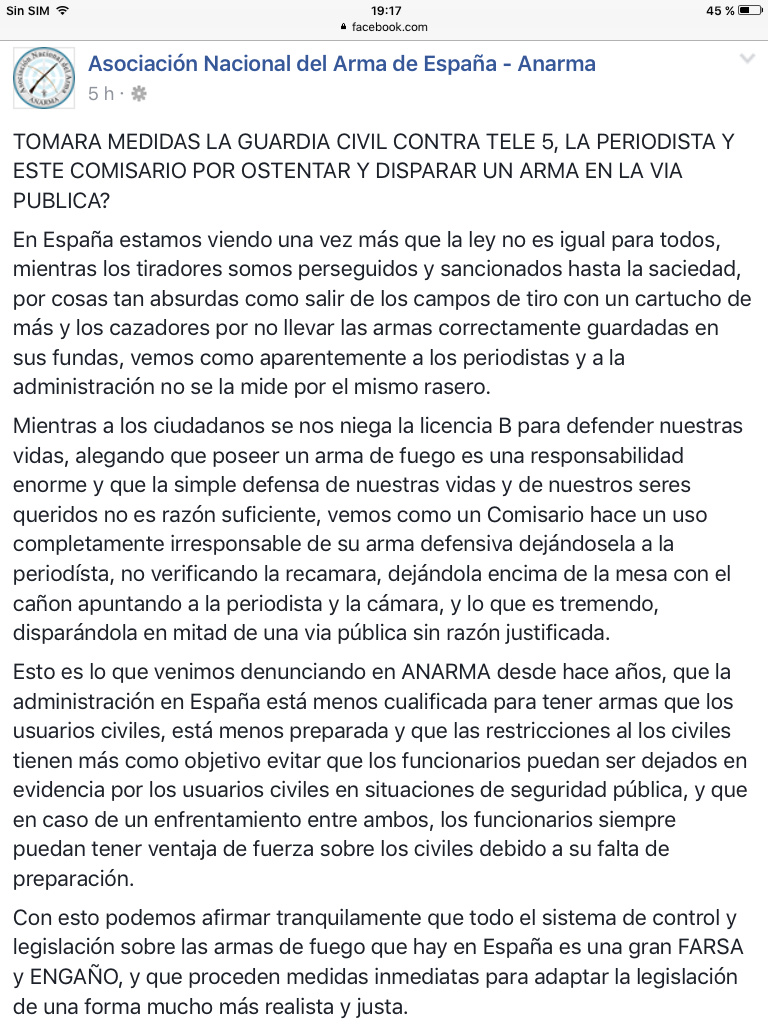Fuera de coñas e ironías, lo que jode y mucho, es que a nosotros (los tiradores deportivos y cazadores) nos la miran con papel de fumar, cuando hay colectivos, y no hablo de; clase política, monarquía, sindicatos o patronal... , que también,![]()