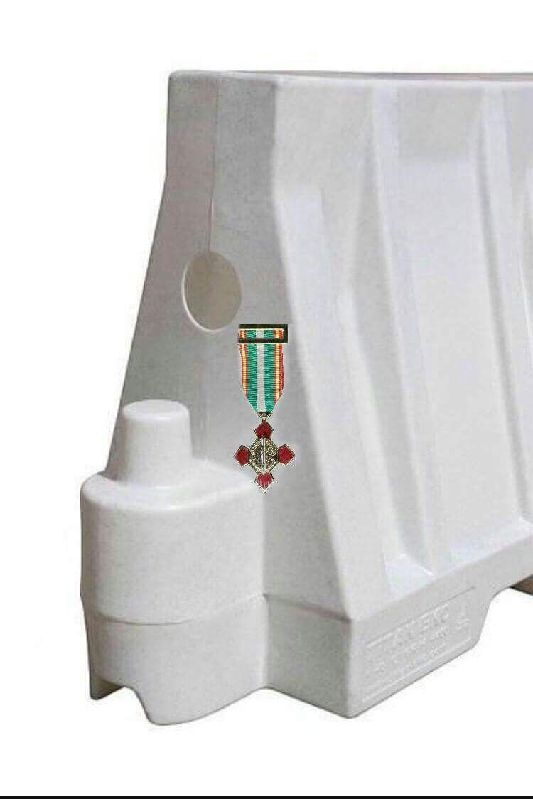 Vamos a analizar bien el caso, el policia para evitar que el energumeno este haga daño con el cuchillo, le estampa en la cabeza la valla de plastico con resultados totalmente satisfactorios y resolviendo la situacion correctamente.