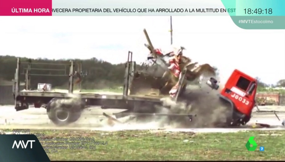 Si hacemos una estimación, un camión de unas 10 Ton, a 90 km/h pues si, todos los que han hecho física en BUP saben que eso no es poco... Y lo que dice el policia de lo mas efectivo es matar al conductor imagino que si. Aunque ya se estan provando nuevas barreras, y en general, se consigue parar el vehículo.