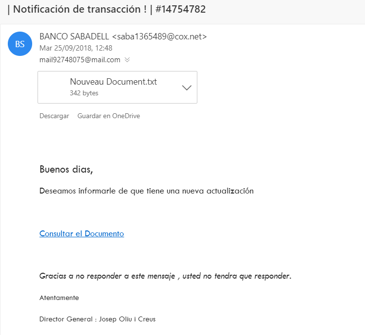 Pues hoy, del banco Sabadell, documento importantísimo para abrir........ :mrgreen: