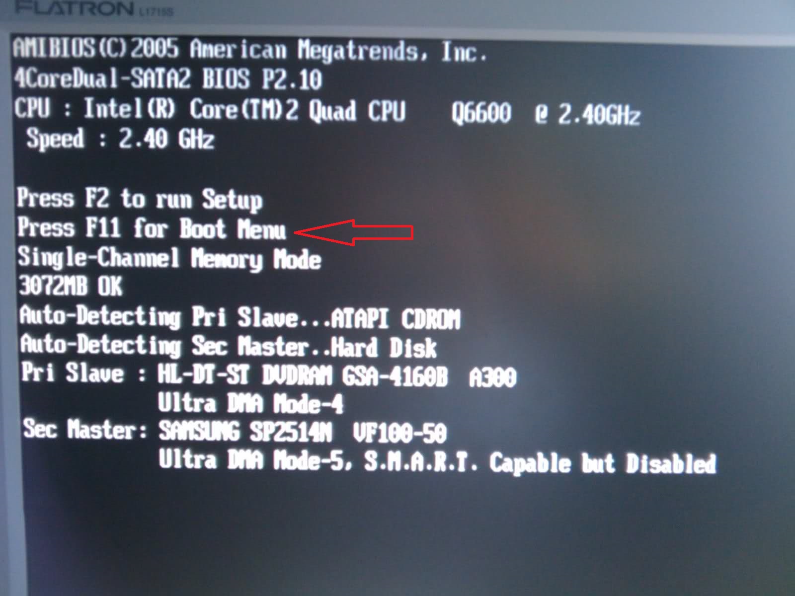 Siempre tienes que pulsar la tecla, antes de que pase a la siguiente pantalla el ordenador, mientras veas la pantalla de ejemplo que te pongo, al pulsar la tecla, te saldrá algo parecido al segundo ejemplo, y debes elegir CDRom ATA, ATAPI, o DVDRAM, o lo que ponga, y ya empieza automáticamente el arranque y la carga de datos desde el CD, para instalar el SO...... :D