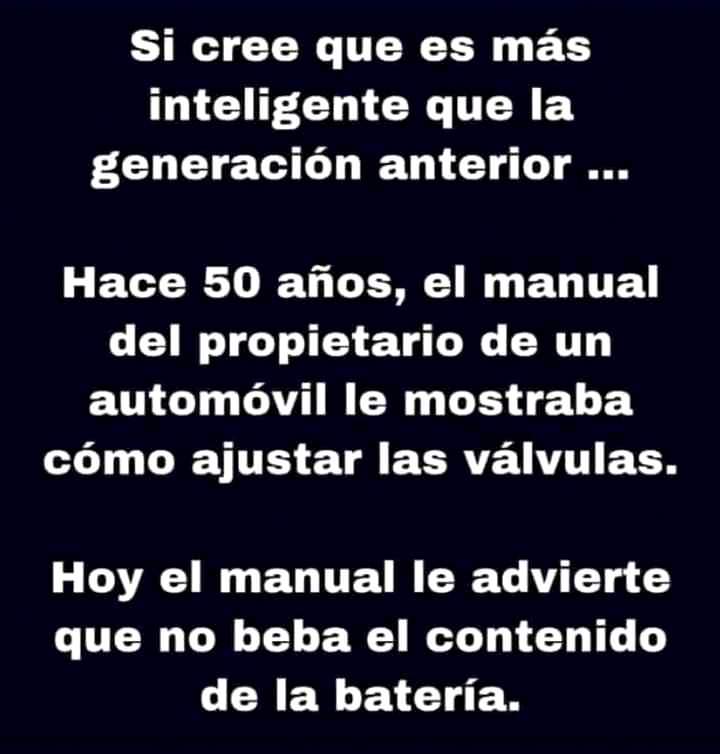 Ahora con el "coche de tu vida" te dan un manual que no lo entiende ni la madre que lo parió. Total, para el tiempo que te va a durar sin averías, sobre todo, eléctricas o electromagnéticas que los "mecánicos" no entienden como no sea a través de un ordenador, pues ya me contarás!!.
