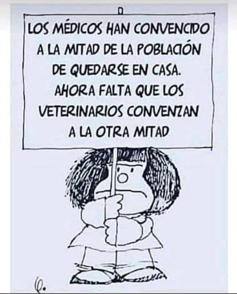Clarines escribió:Breys escribió:Creo que el que hizo este dibujo no sabia quien era Mafalda. Mafalda era Quino. Y creo que Quino y/o Mafalda estarian mas porque no se vulneraran los derechos fundamentales que por encerrarnos en nuestras casas.