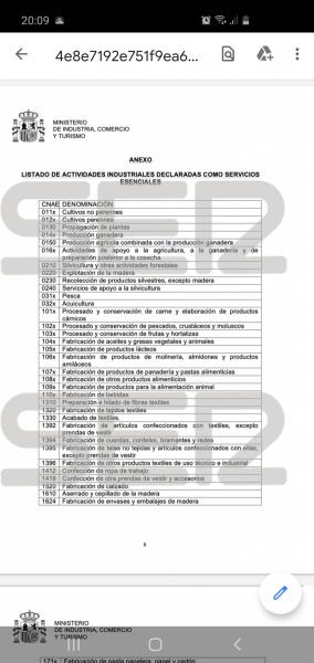 Por si es de interes salen los cnaes considerados esenciales, lo tengo en pdf, pero no me deja subirlo.