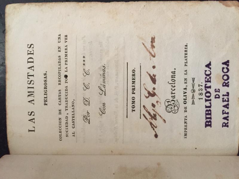 Las amistades peligrosas, en formato pequeño, menos de doceava. de 1837, tomo 1,con unos preciosos dibujos.