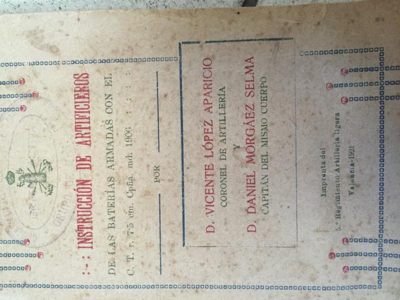 Instrucción de artificieros de las baterias armadas con el C.T. r. 7,5 cm Cpña. md 1906 año 1921