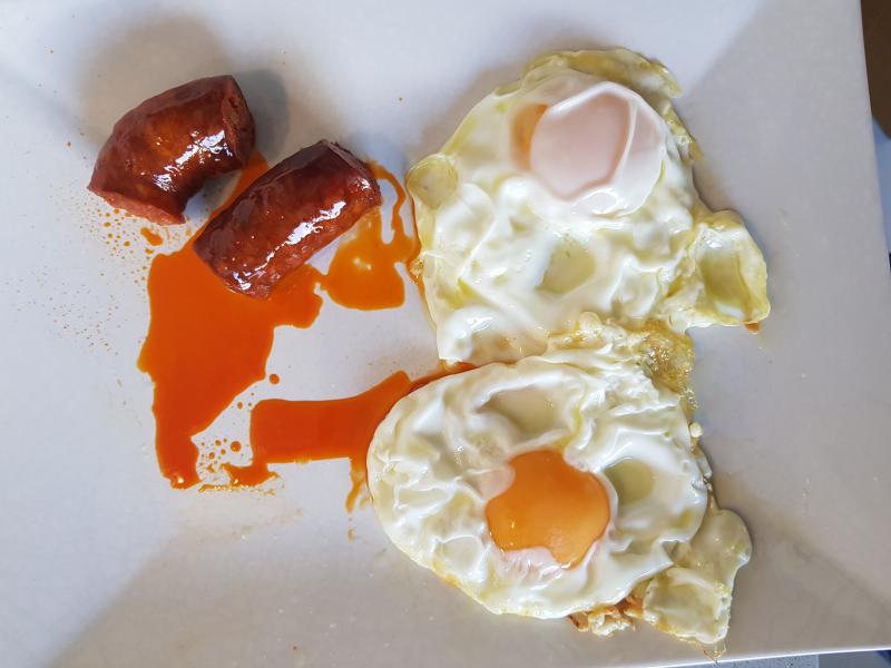 Hoy huevos fritos de gallina criadas en suelo acompañados de chorizo.