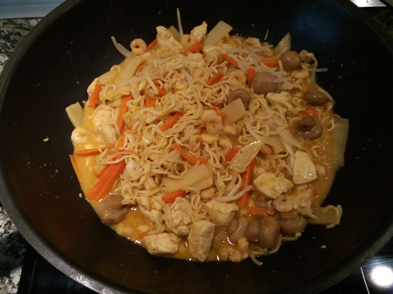Hoy Wok de pollo y gambas ..............., y ya tá, que ayer salimos a comer junto a la arena de la playa, en la localidad costera de Benajarafe, y nos pusimos de decir amén.