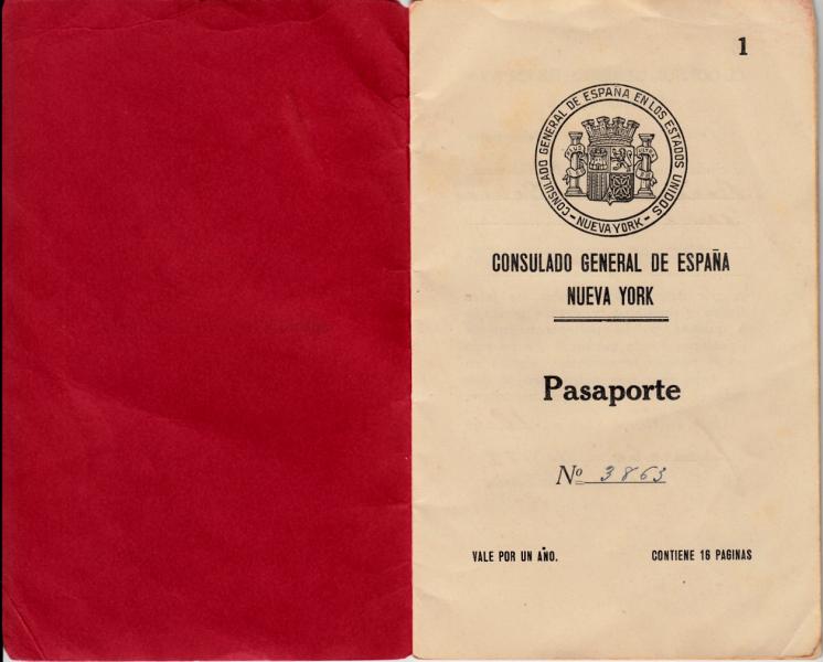 Pasaporte Republicano expedido en el consulado de Española en Nueva York