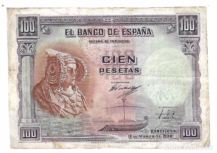 Este billete Republicano de 100 pesetas expedido en Barcelona en Marzo de 1938 en plena guerra,