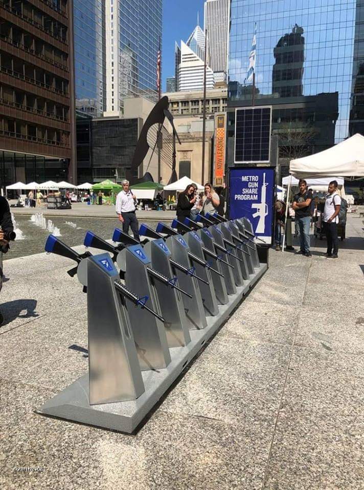 Es una "exposición" de los anti-armas en Chicago. Qué tontacos.