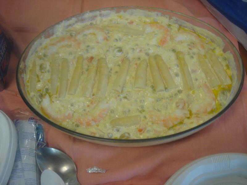 Foto de la Ensaladilla Nacional que nos hemos apretao hoy a las 13:30 luego de la tirada, con gambas y espárragos a la vista.