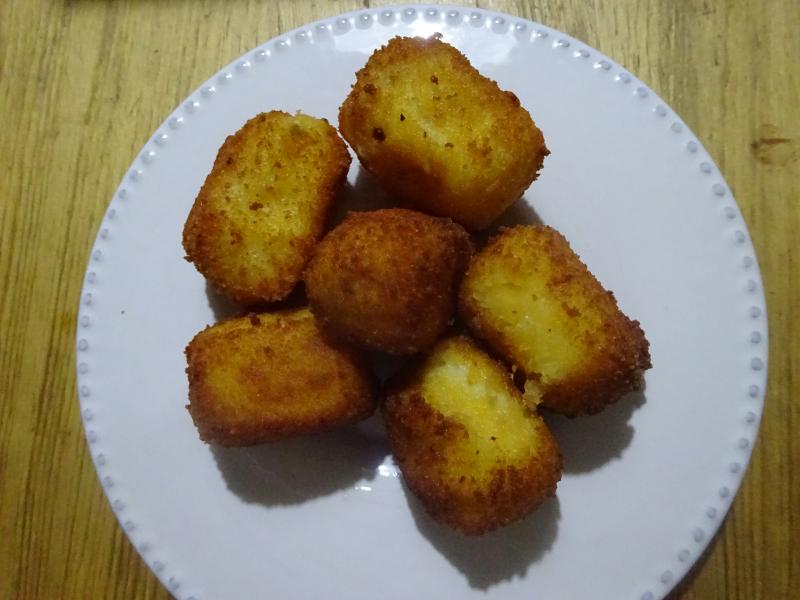 Cena ligerita a base de croquetas (6) con la carne de la gallina del caldo, jamón de paletilla iberica muy troceadito y huevo duro tambien muy picado, todo a cuchillo, la bechamel como siempre muy leve, casi etérea.