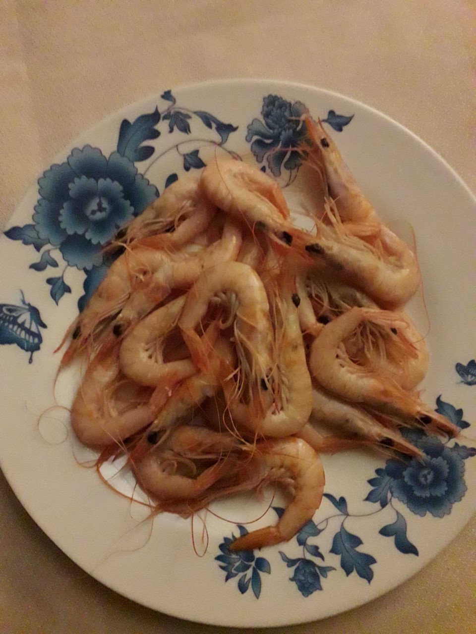 Y mira por donde un "admirador" me trajo de Isla Cristina una pescada de pincho y unas gambitas, que cuando llegué a la mesa solo quedaba esto:
